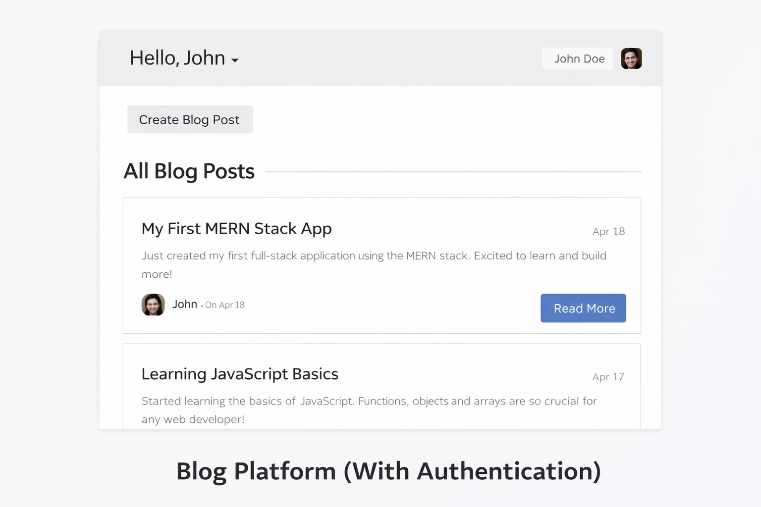 The platform implements secure JWT-based authentication, protected routes, and role-based authorization to ensure users can only modify their own content. A rich text editor enhances the writing experience, while dynamic UI updates provide a smooth and interactive user experience.